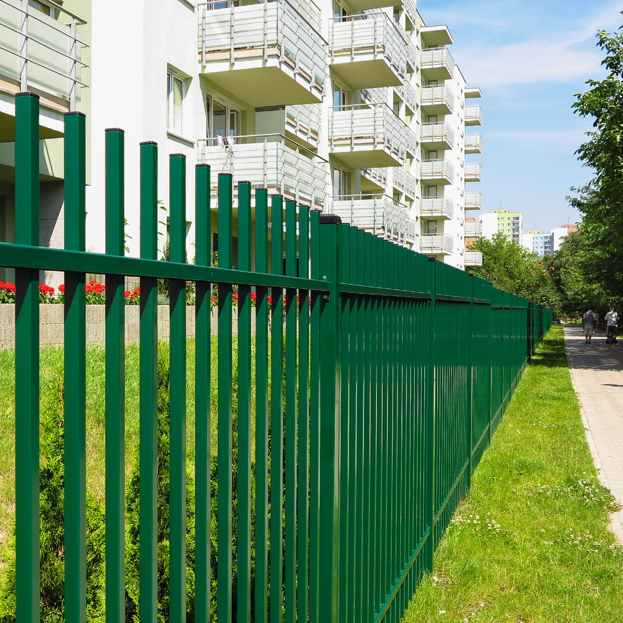 Pulverbeschichtete Zaunsysteme sind nach DIN EN ISO 10327 vom Band feuerverzinkt (nach der Sendzimir-Methode), danach werden die Zaun- und Torsysteme – nach dem DUPLEX-Verfahren – mit hochwertiger Qualicoat-Pulverbeschichtung pulverbeschichtet.