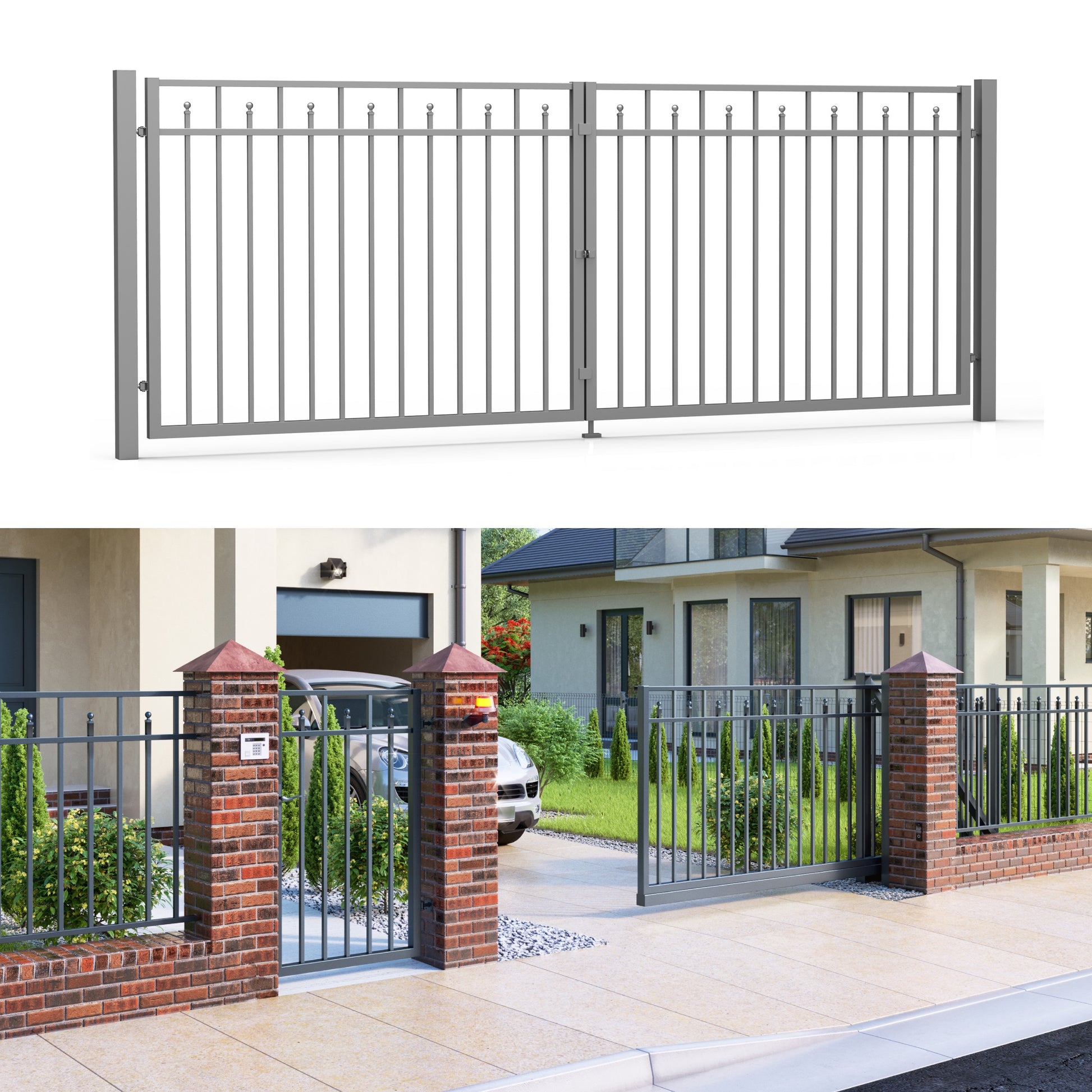 Doppelflügeltor Residence zeichnet sich durch klassisches und elegantes Design, sorgfältige Schlosserei- und Schweißverarbeitung, ansprechende Optik sowie eine stabile und steife Stahlkonstruktion aus. Der Rahmen dieses Tores besteht aus Profilen 60×40 mm, die horizontalen Quertraversen aus Stahl-U-Profilen, und die Füllung aus geschlossenen Profilen 20×20 mm. Jedes zweite Füllprofil ist mit einer dekorativen Kugel abgeschlossen.