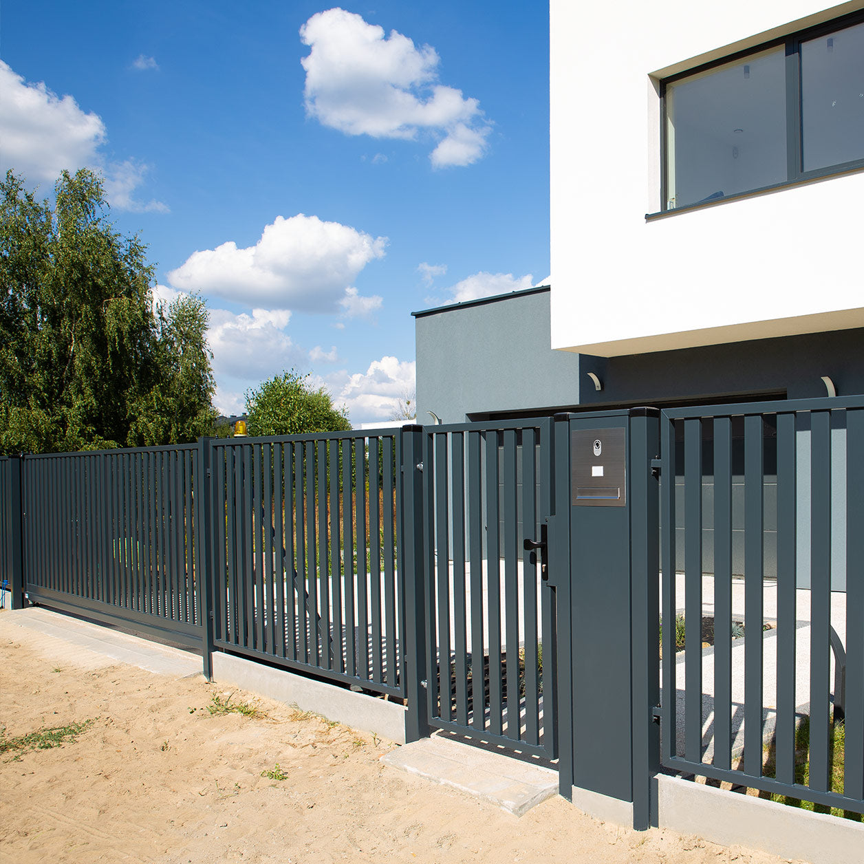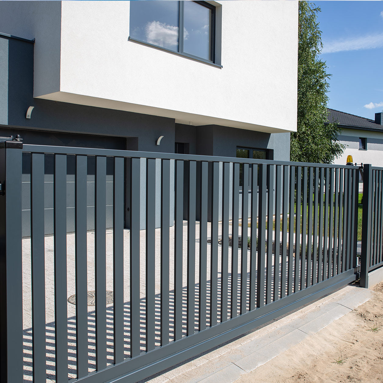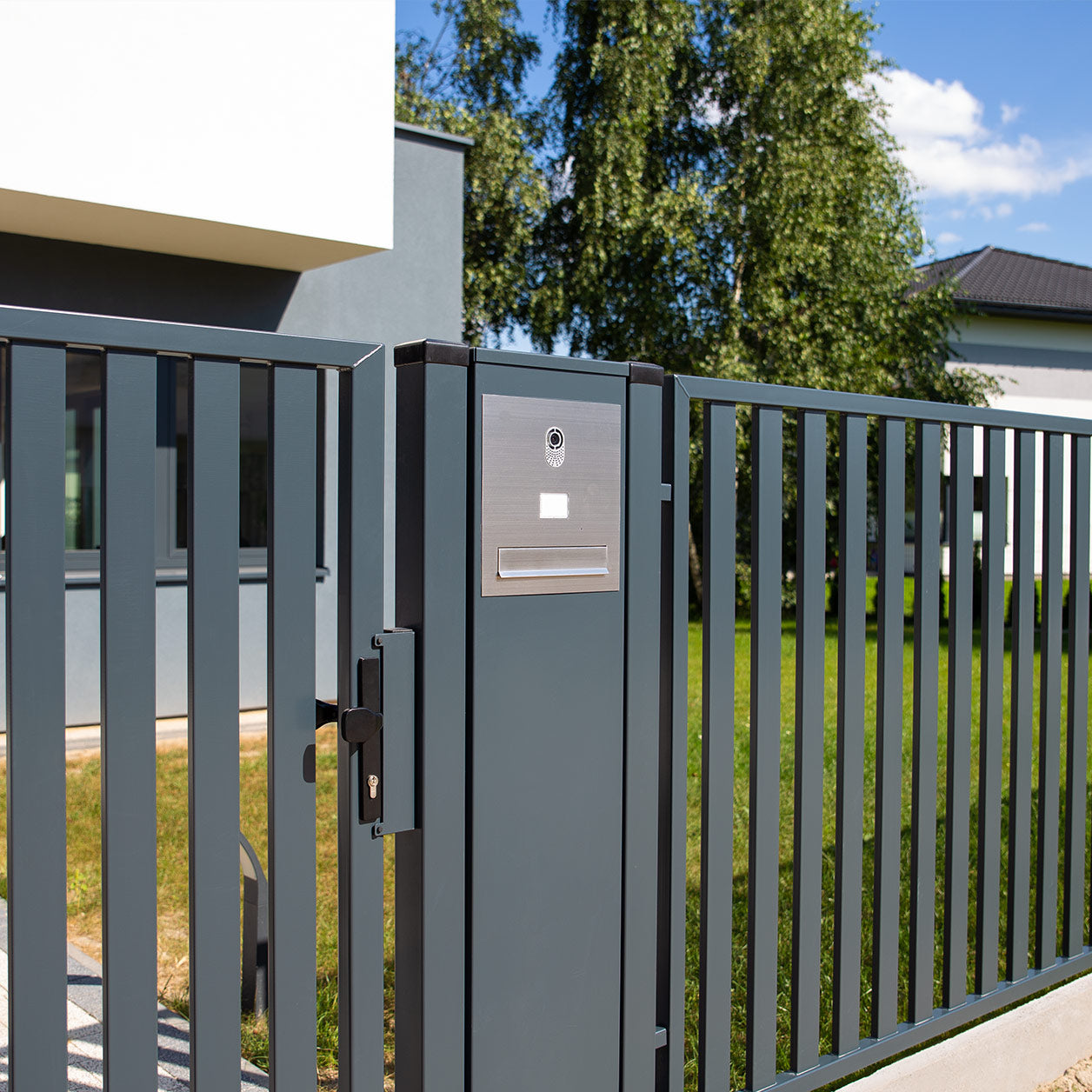 Die Pforte hat eine robuste Konstruktion aus hochwertigen Stahlprofilen. Das Vertical System ist gegen Korrosion und eine Vielzahl von Witterungseinflüssen resistent.