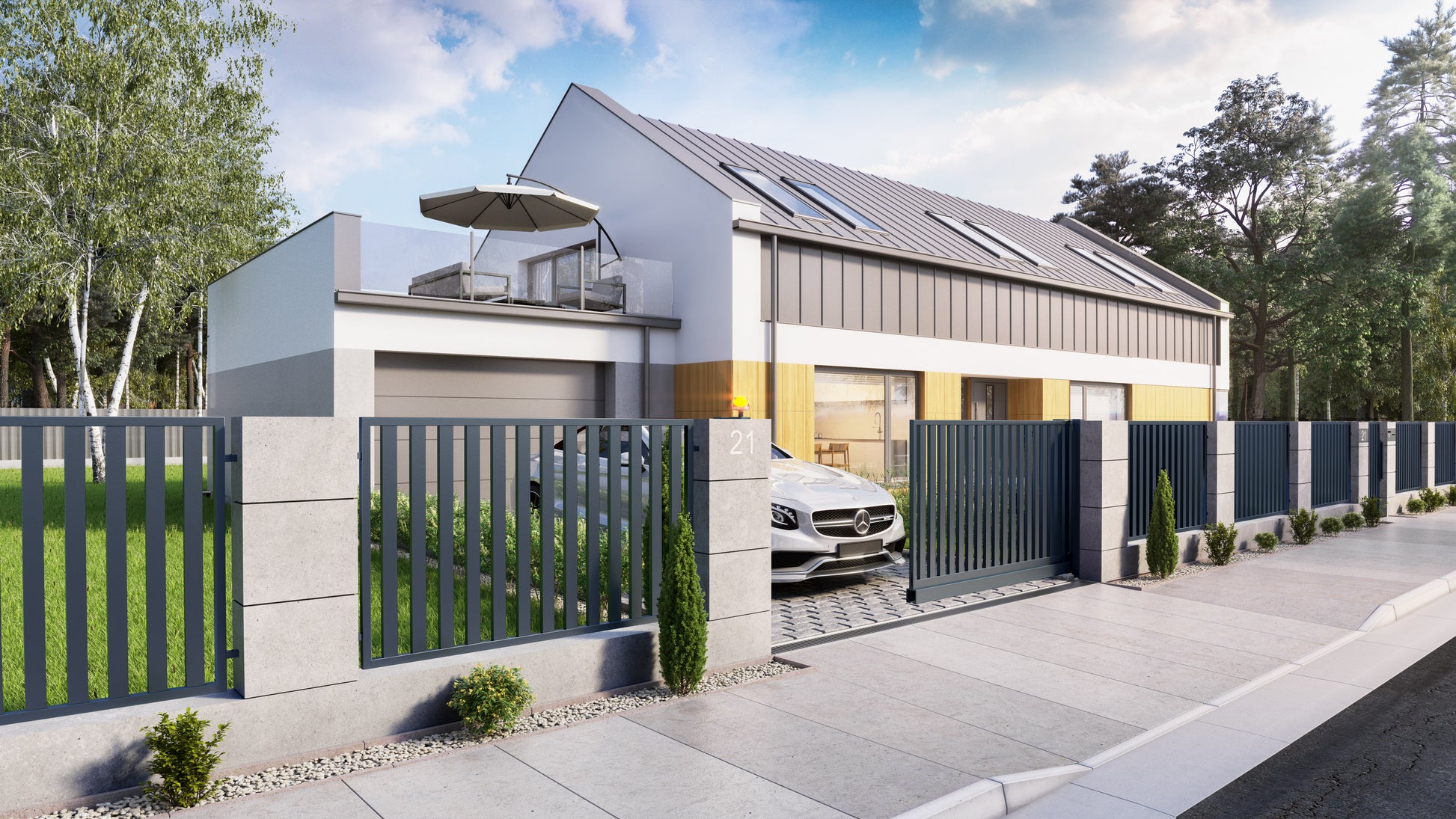 Die Pforte Vertical zeichnet sich durch eine stabile und langlebige Konstruktion, eine sorgfältige und ästhetische Verarbeitung sowie ein interessantes und minimalistisches Design aus. Korrosionsschutz: Feuerverzinkung + Pulverbeschichtung (RAL-Farbpalette).