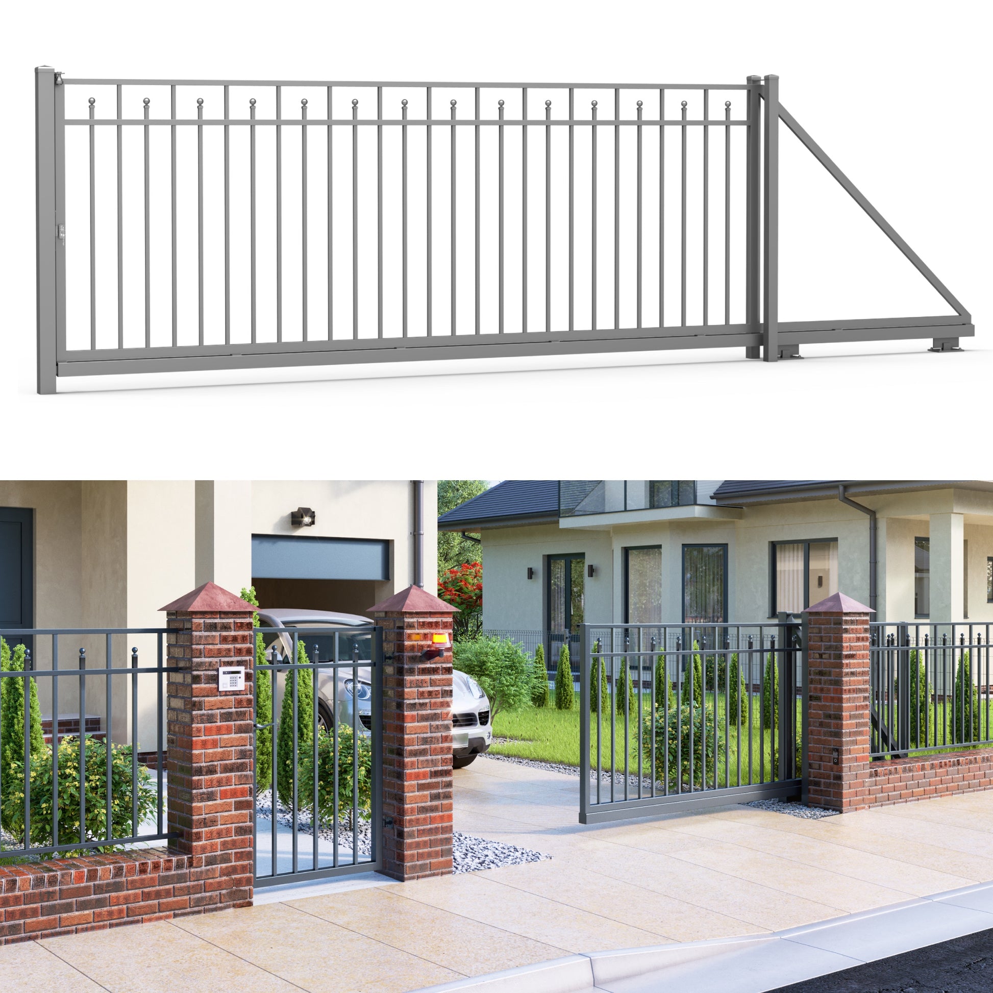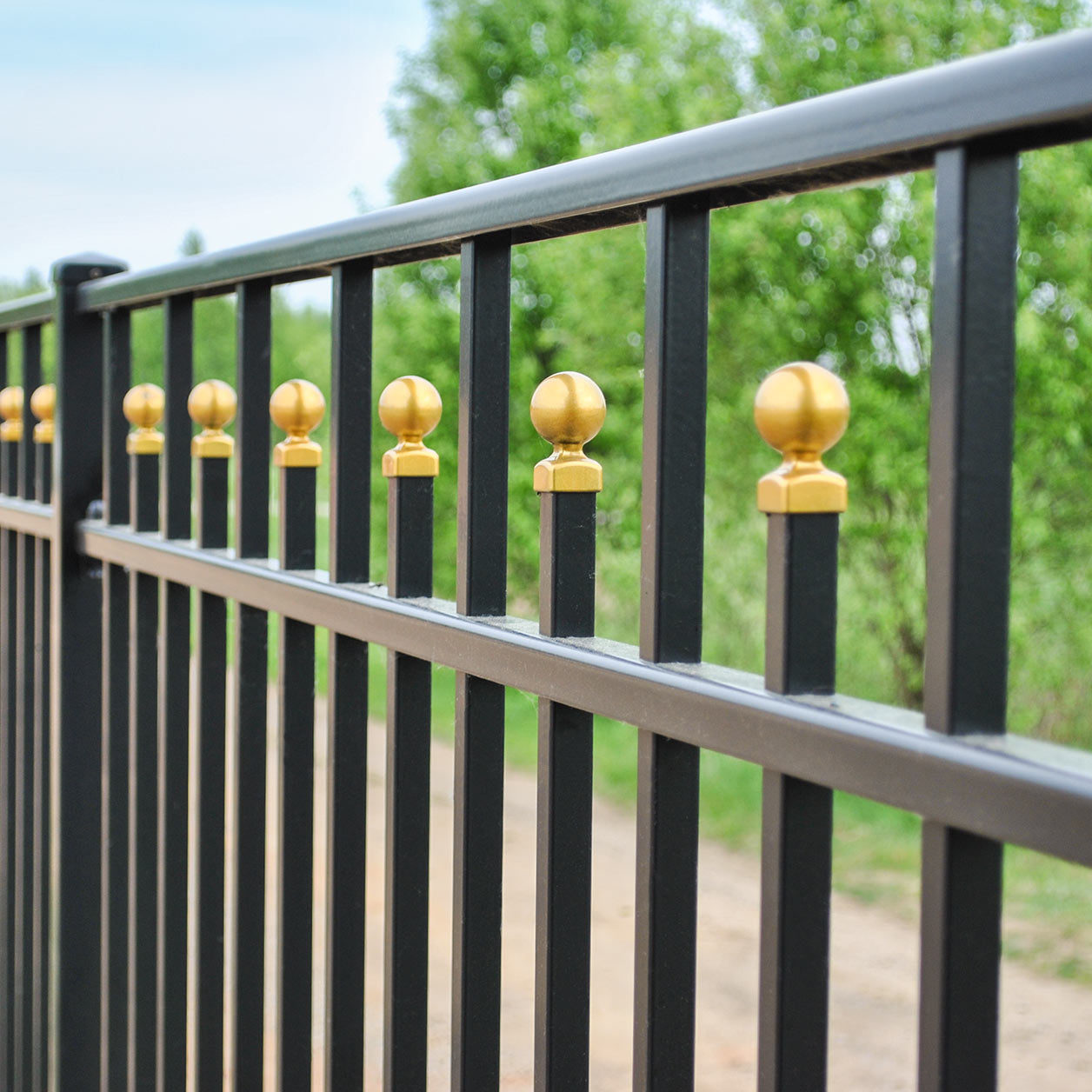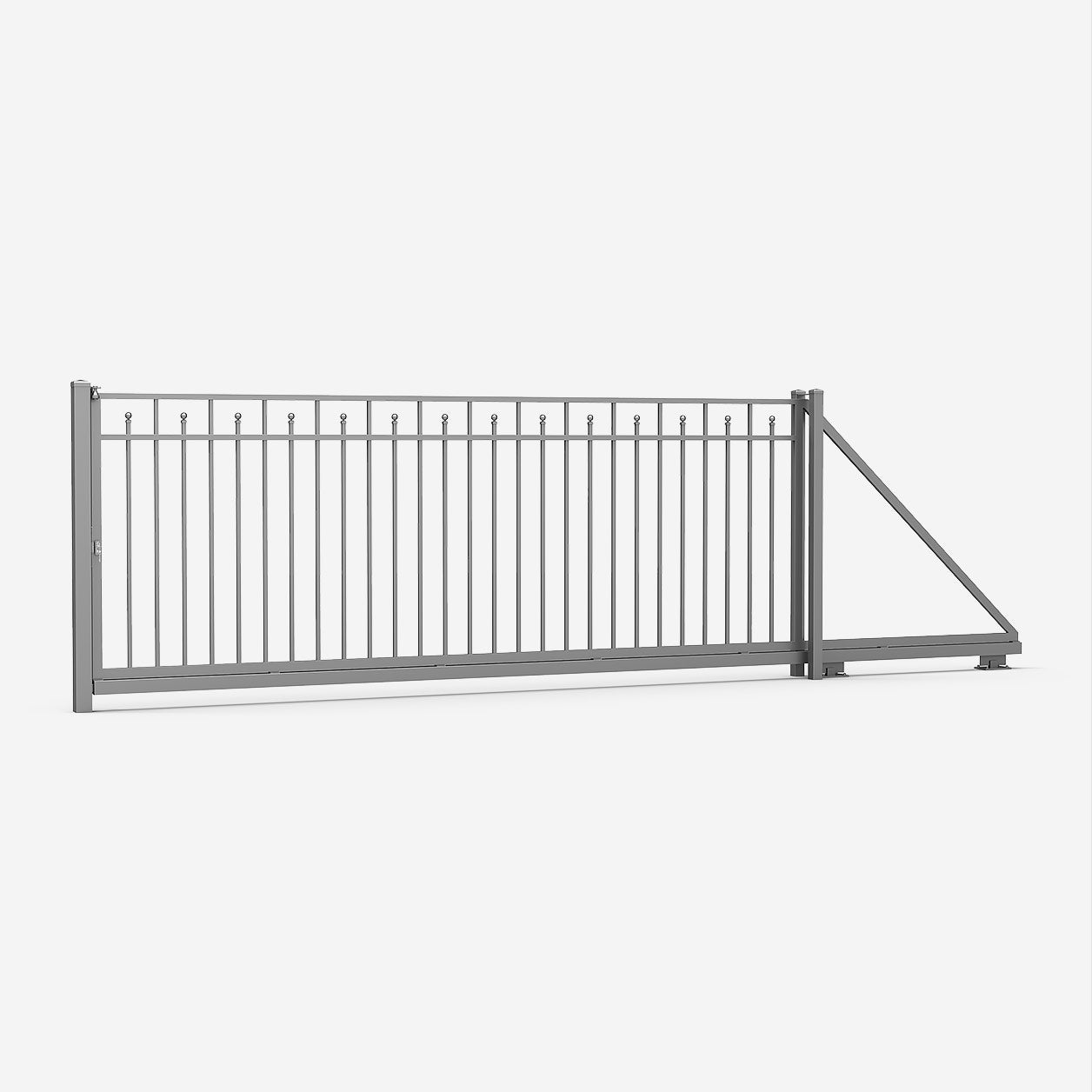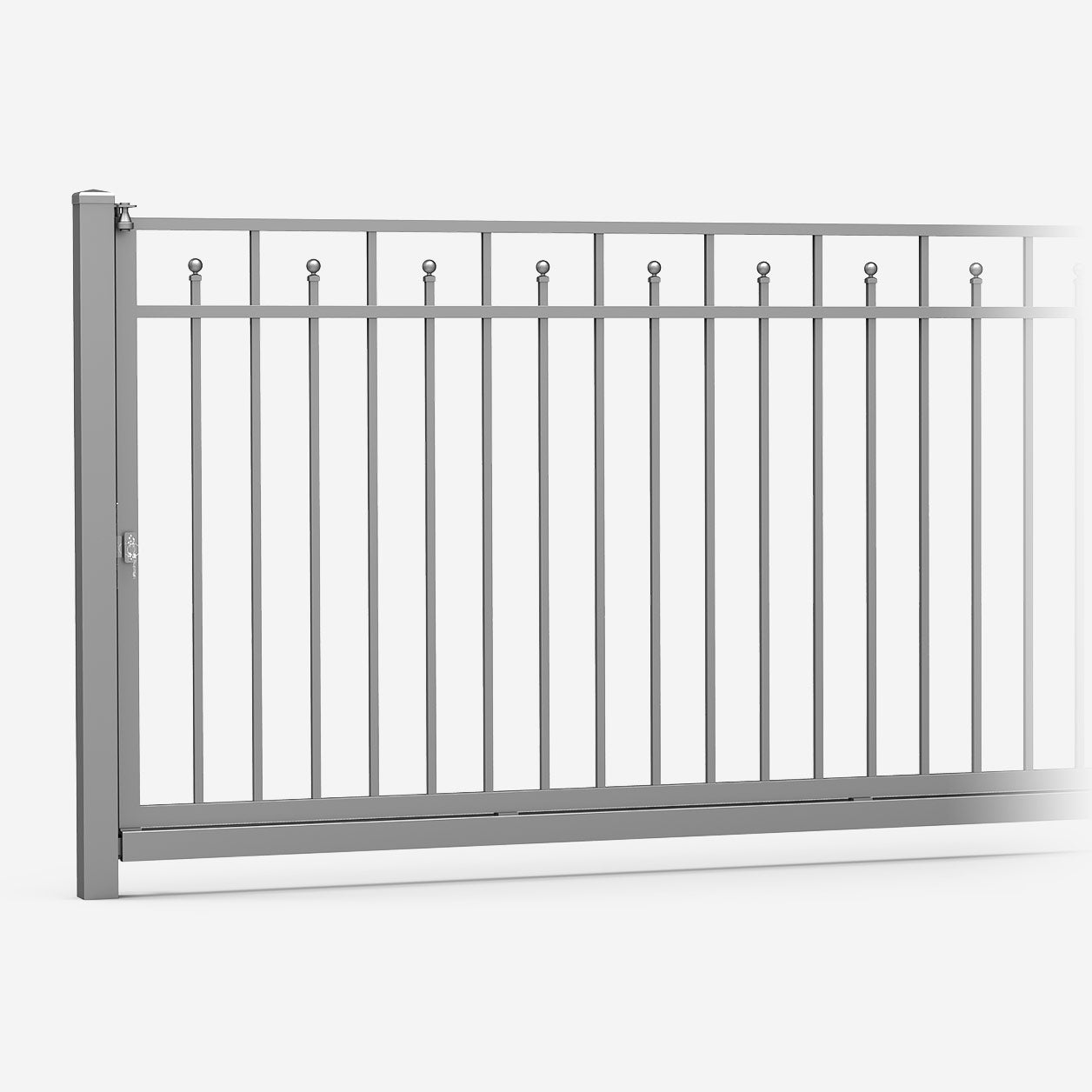 Schiebetor Residence ist im klassischen Stil gehalten, zeichnet sich durch eine elegante und repräsentative Form sowie eine sehr ästhetische Verarbeitung aus. Die Konstruktion des Flügels basiert auf einem soliden Rahmen und horizontalen Querstreben aus Stahl-U-Profilen, während die Füllung aus geschlossenen Profilen 20×20 mm besteht. Die Hälfte der Füllprofile ist mit dekorativen Kugeln abgeschlossen.
