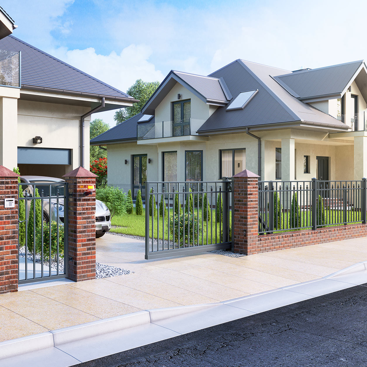 - Zaunfeld-Füllung: 20x20 mm Stahlprofile mit dekorativen Kugel