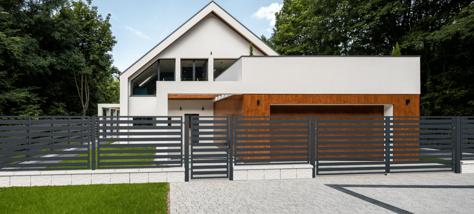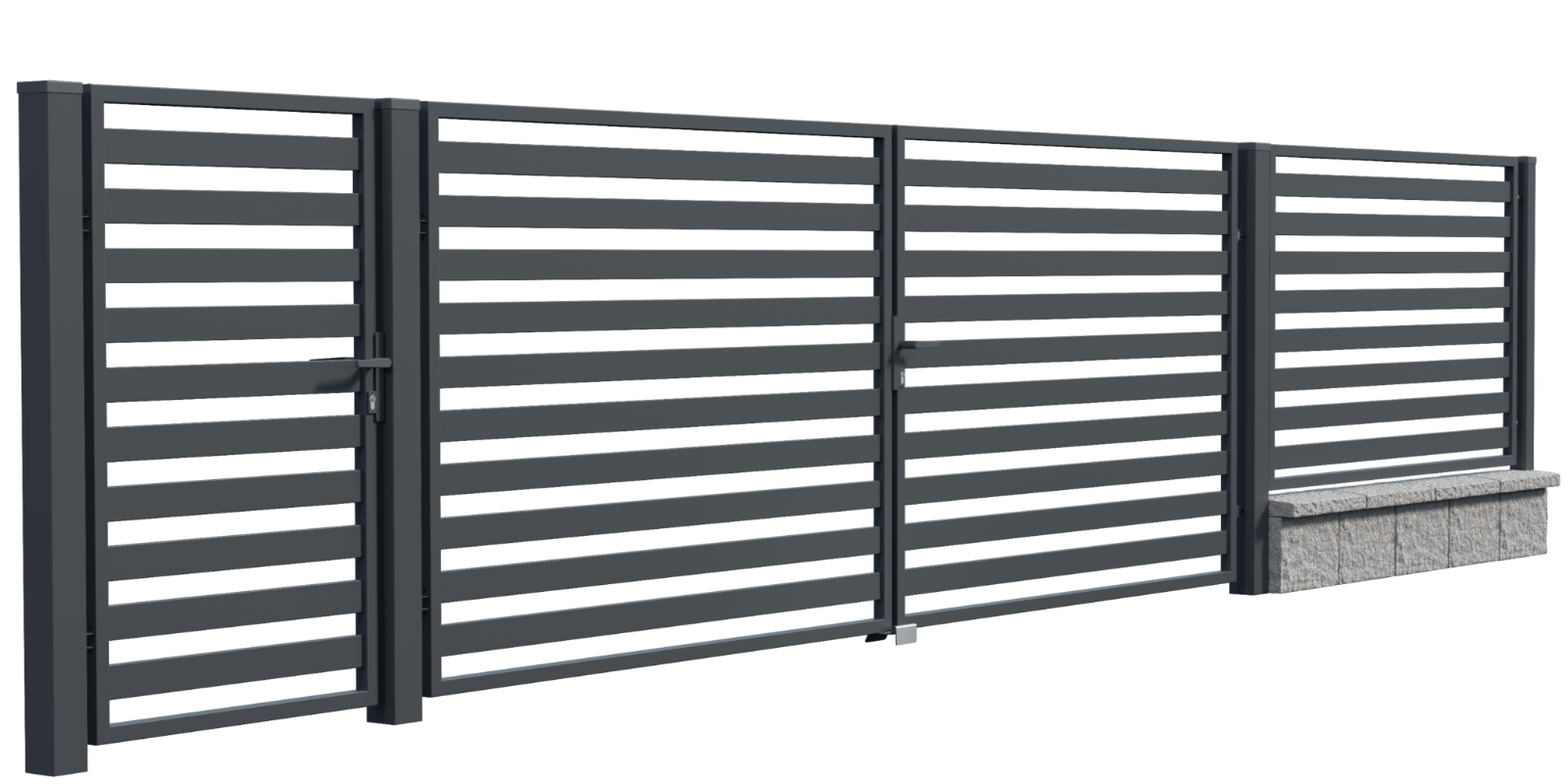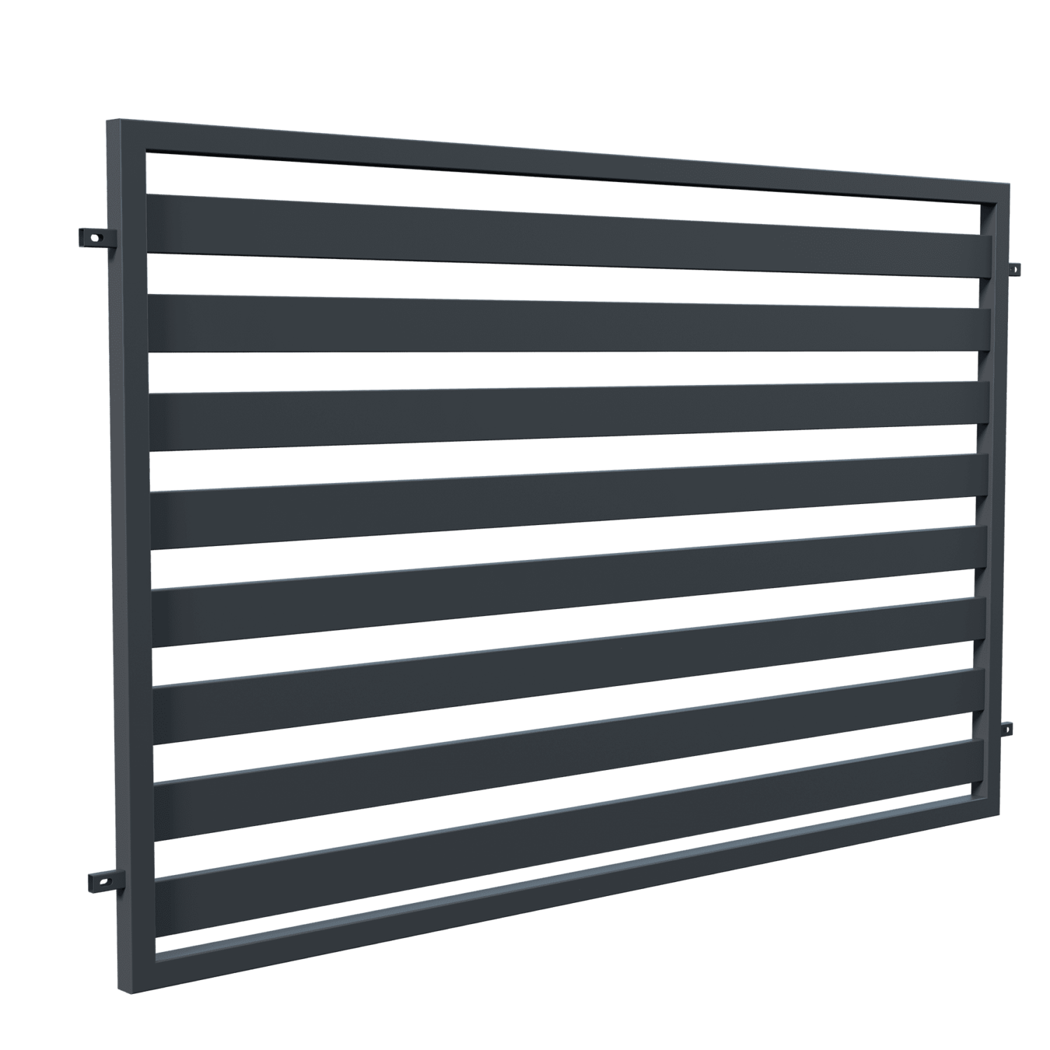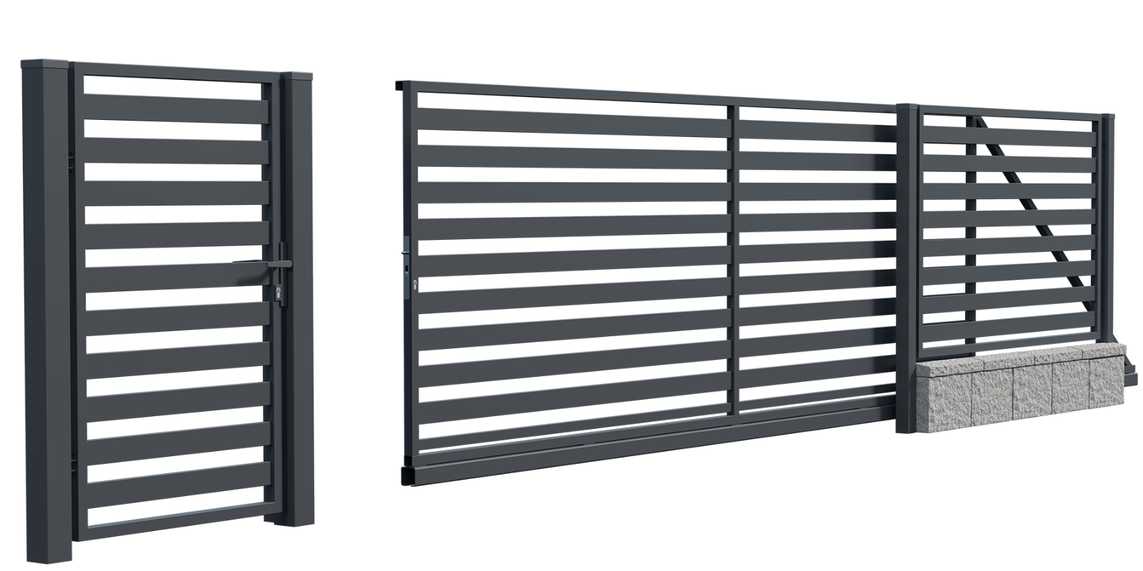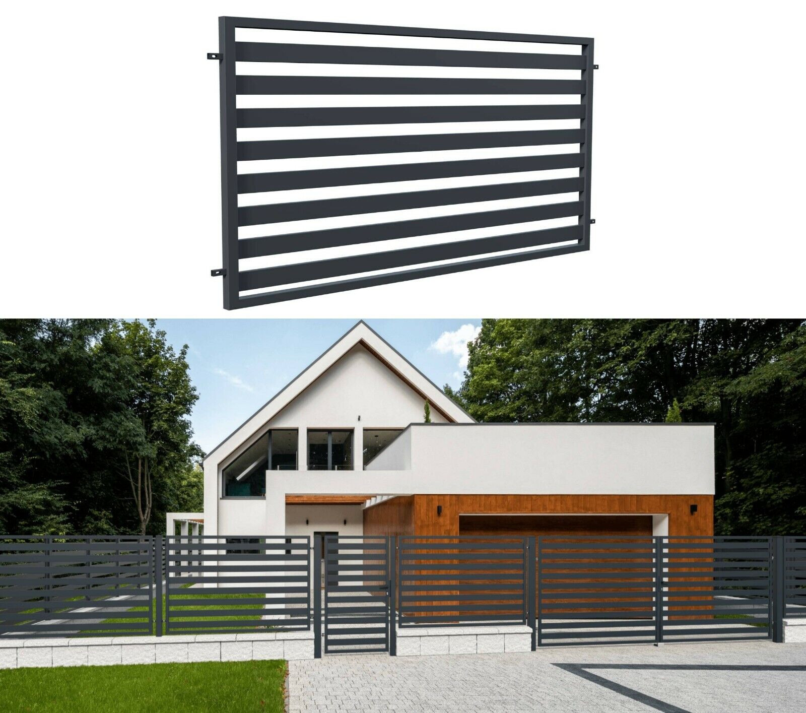 Die Serie MILTON ist ein perfektes Beispiel für die gelungene Kombination von moderner Architektur und minimalistischem Design. Die horizontale Struktur der breiten Stangen, eingefasst von einem dünnen Rahmen, verleiht dem Ganzen eine ausdrucksstarke Form. Die graue Graphitfarbe mit feiner Struktur sorgt für ein unglaublich stilvolles Design und fügt sich perfekt in die Architektur des Hauses ein. Durch die Verwendung von verzinktem und pulverbeschichtetem Metall ist es langlebig. Mit dem trendigen Anthrazit-Look verleiht diese Serie Ihrer Immobilie einen eleganten und modernen Touch.